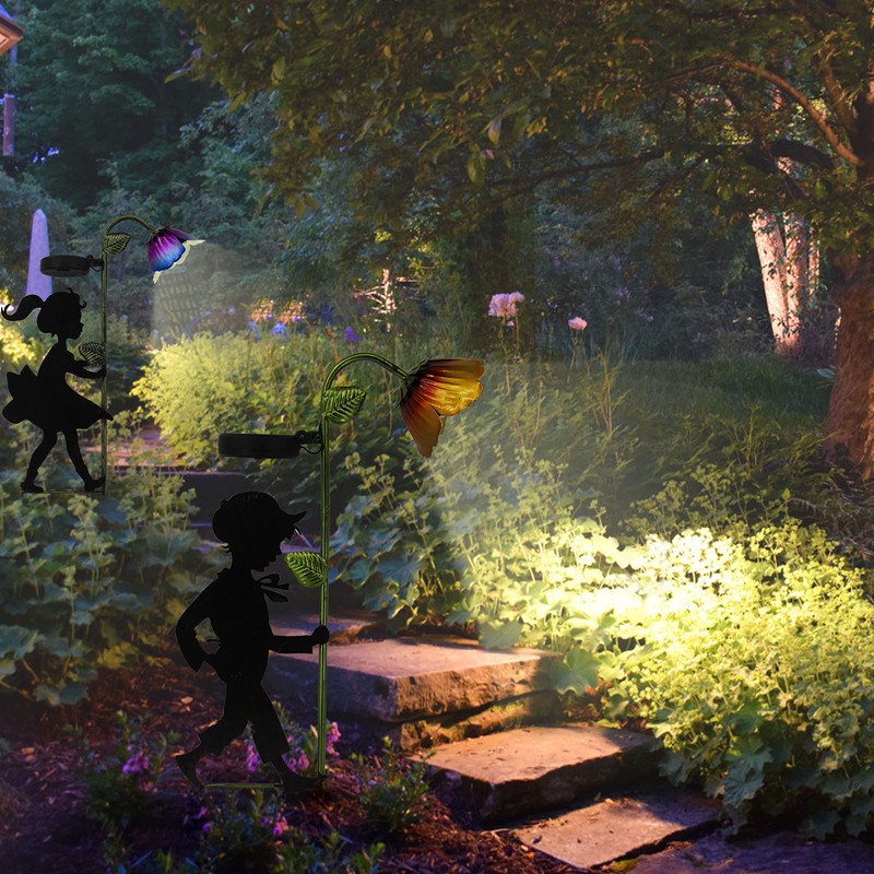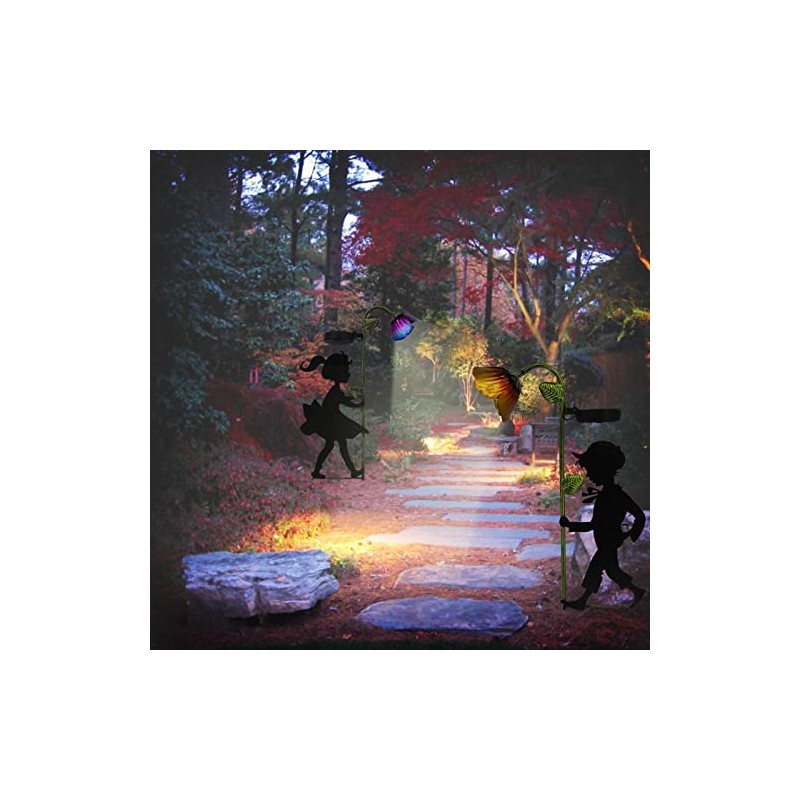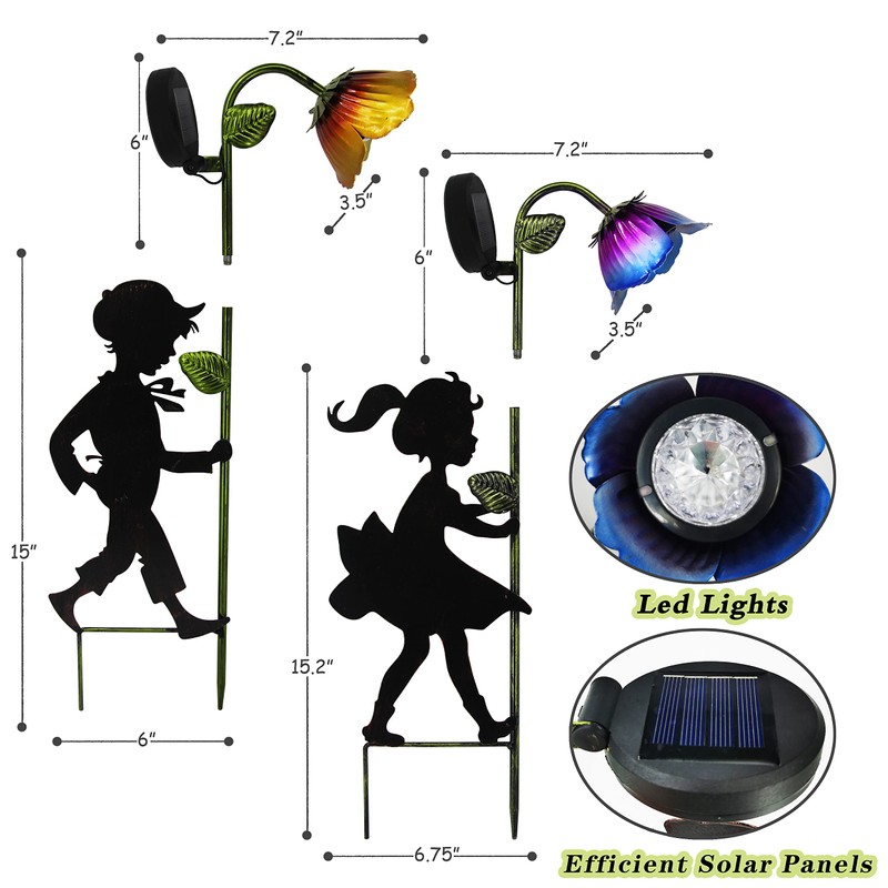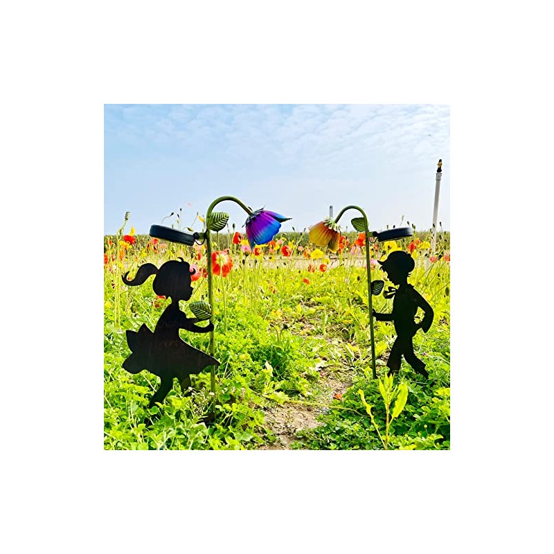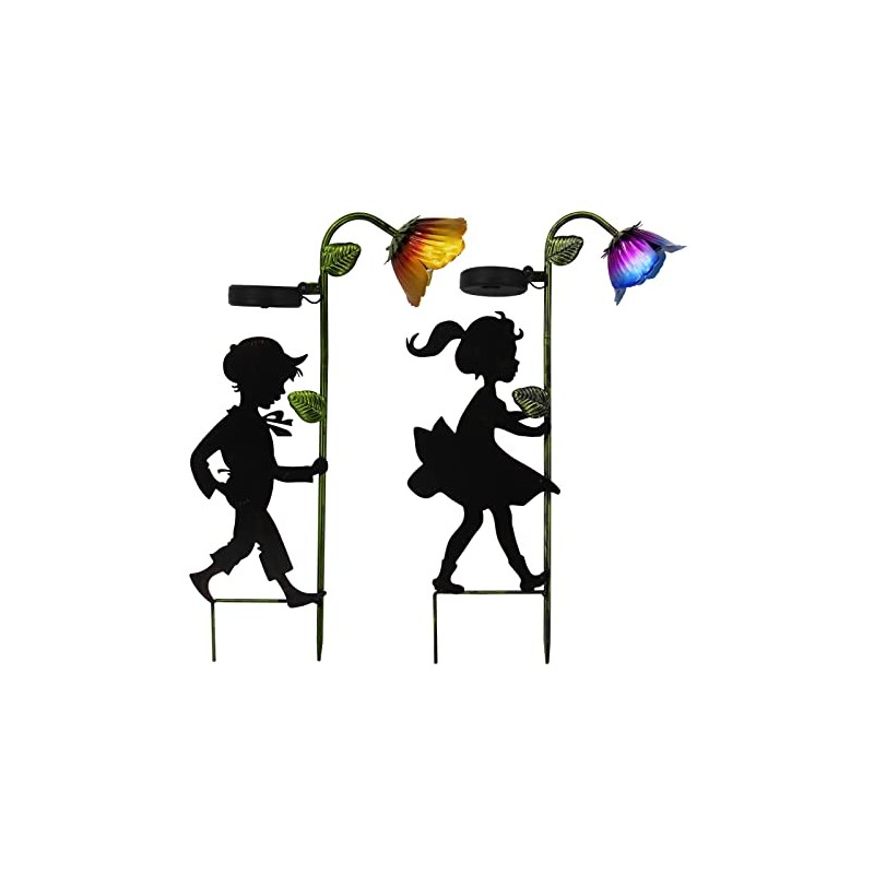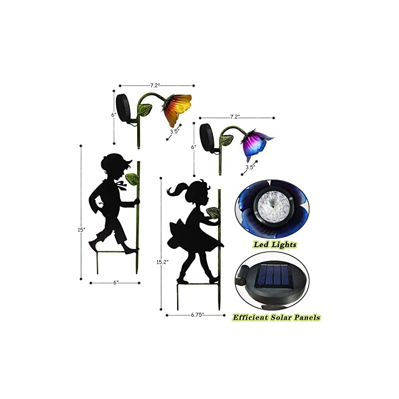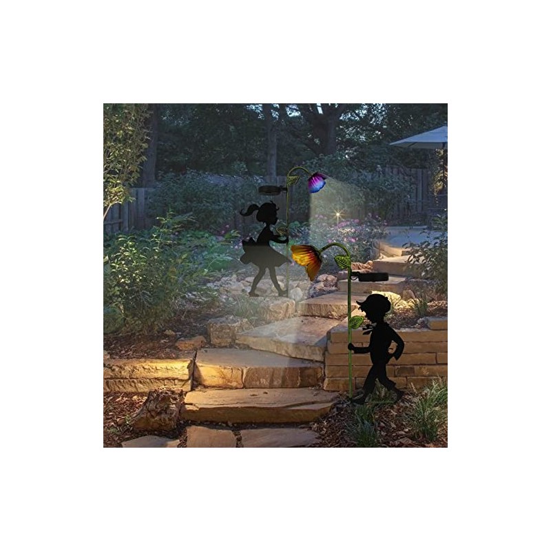 WUFEILY Solar Garden Lights 2 Pack, Boy Girl Silhouettes LED Solar Landscape Lights, Metal Solar Lights Outdoor Decorative for Garden, Landscape, Path, Yard, Patio, Driveway