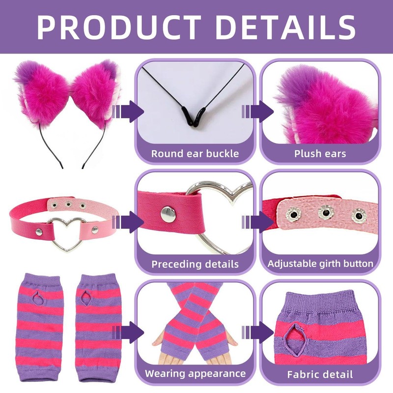 - 【Product Content】 You Will Receive 1 Headband, 1 Collar, 1 Tail And 1 Pair Of Gloves. The Headband Size Is About 12.7Cm, The Collar Size Is 32*2Cm, The Tail Length Is 50.8Cm, The Glove Size Is About 22*8.5Cm, The Color Is Purple-Pink, Suitable For Role-Playing And Dress-Up Use.
