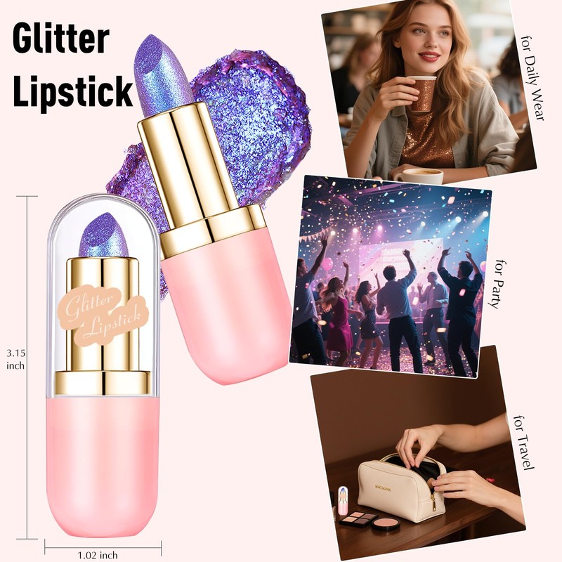 - Smooth Application: Glide on effortlessly for full, even coverage! The creamy texture of this glitter makeup lipstick ensures a smooth application that feels lightweight and comfortable. Enriched with a non-drying formula, it keeps your lips moisturized & prevents cracking