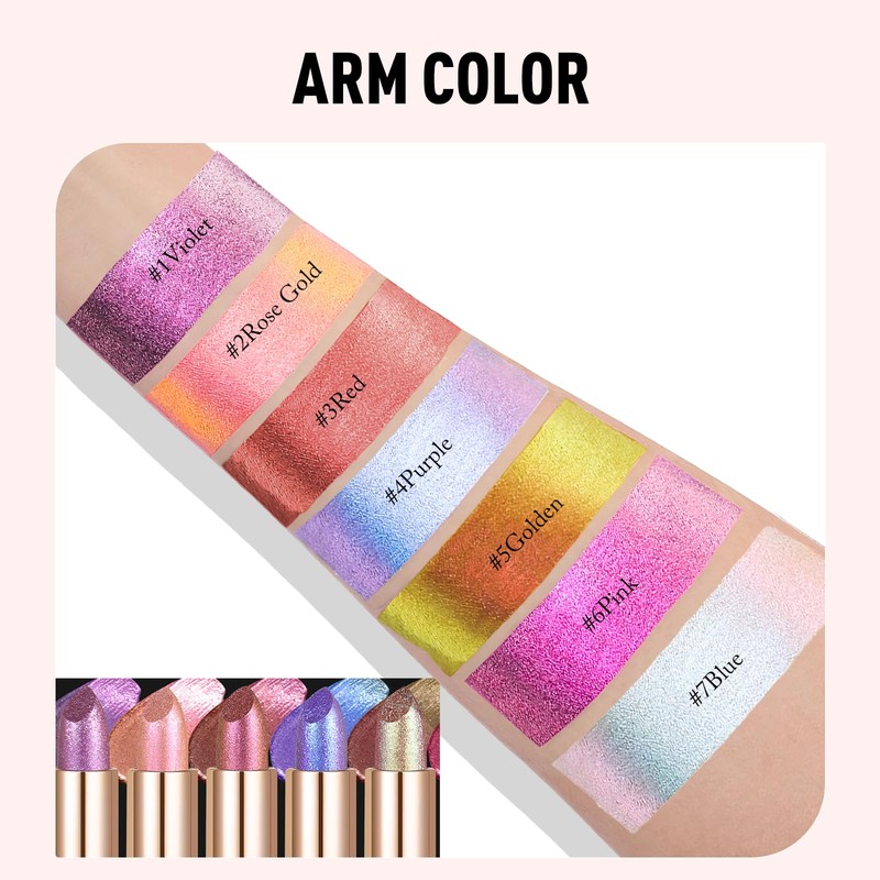 - Vibrant Metallic Finish: Achieve a dazzling look with Wugbc holographic glitter lipstick! Its shimmering metallic finish catches the light beautifully, delivering an eye-catching sparkle that enhances your lips’ appearance. Available in bold shades like violet, rose gold, red, purple, golden, pink, and blue, this holographic lipstick lets you express your unique style