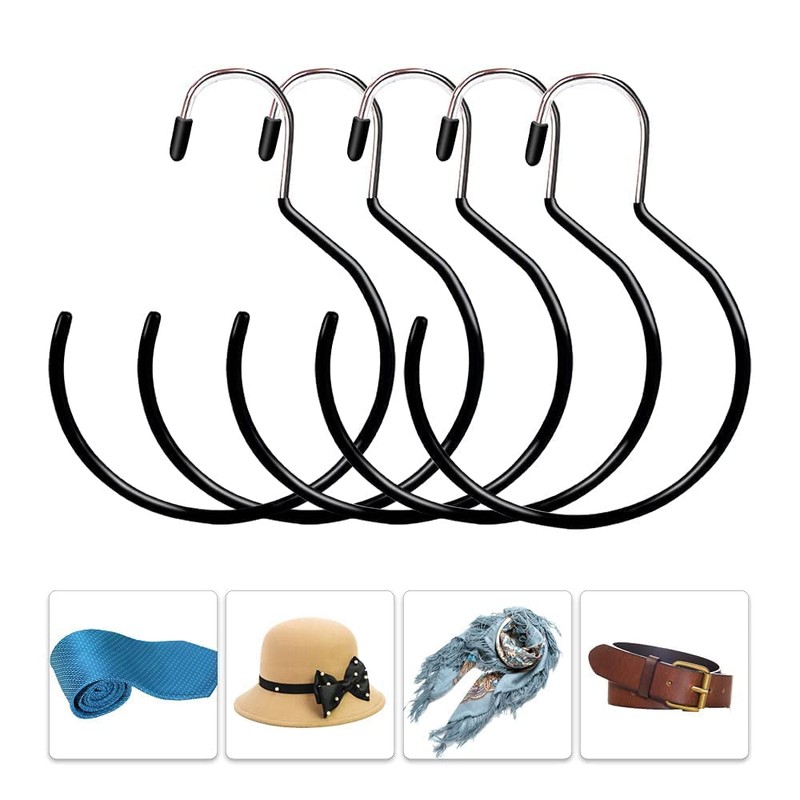 WUGU Pack of 5 Belt Ring Belt Holder, Large Hat Holder, Scarf Holder, Tie Holder, Curved Scarf Hanger with Laundry Hooks, Ideal for Wardrobe Organisation of Belts, Handbags & Scarves