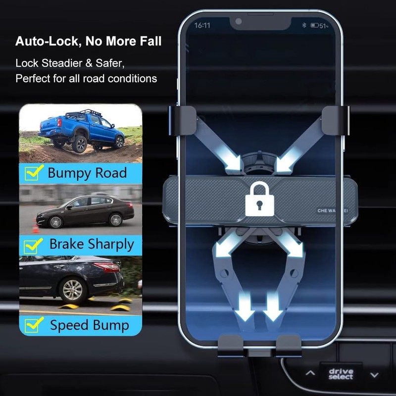 - 【Merge with the screen】Different with most universal phone car mount,our cell phone holder car screen mounted style,it is integrated with the original car screen,does not block line of sight and there is no noise even when driving on a rough road.