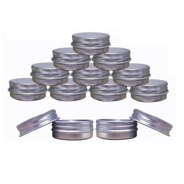 Wuiil Aluminum Tin Jars, Cosmetic Sample Metal Tins Empty Container Bulk, Round Pot Screw Cap Lid, Small Ounce for Candle, Lip Balm, Salve, Make Up, Eye Shadow, Powder (12 Pack.5Oz/15ml)