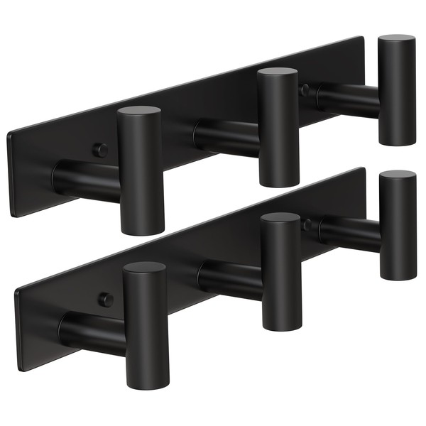 WUIVIUT Heavy Duty Black Metal Hooks 29.5 CM Modern 3 Hooks Wall Rack for Hanging Coat Hooks Wall Hooks Towel Hooks 2 Pack