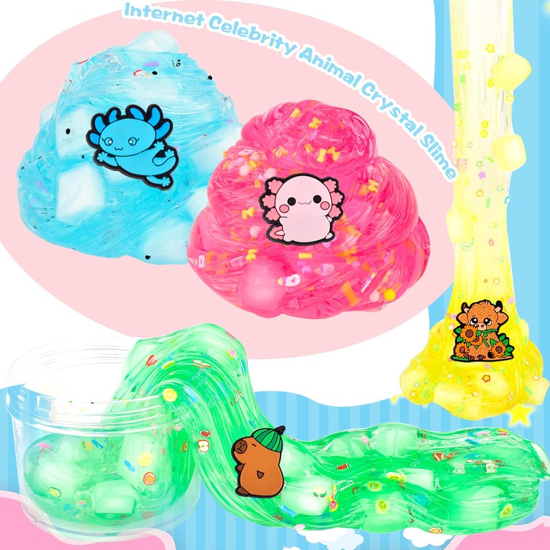 - 🐉 【Adorable Axolotl, Capybara & Highland Cow Charms】 Comes with 24 unique accessories, including 12 cute axolotls, 6 fluffy highland cows, and 6 adorable capybaras. Plus, 24 fun stickers to personalize your slime creations.