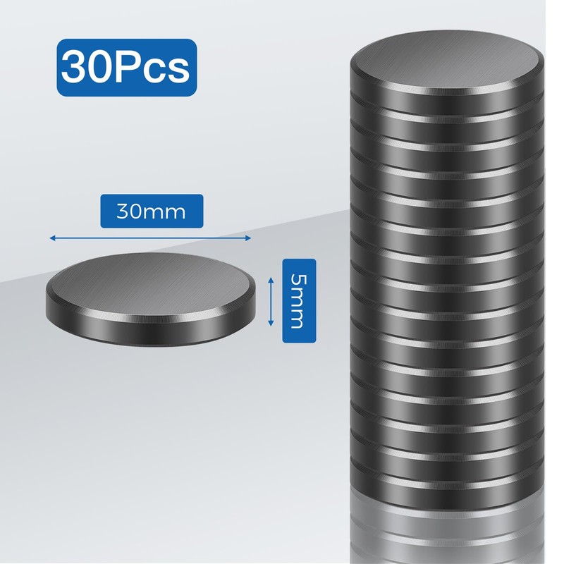 Wukong 30 Pack Ferrit Magnets - Strong, 30×5mm Black & Whiteboard Magnets for Crafts, Notice Board and Office (1.18×0.02in)