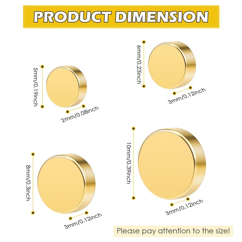 • Size and packaging: 100 pieces 5 x 2 mm (tolerance: ± 0.2 mm x ± 0.2 mm) thick gold magnets are packed in a transparent storage box, which is easy to store and makes checking the quantity easier.