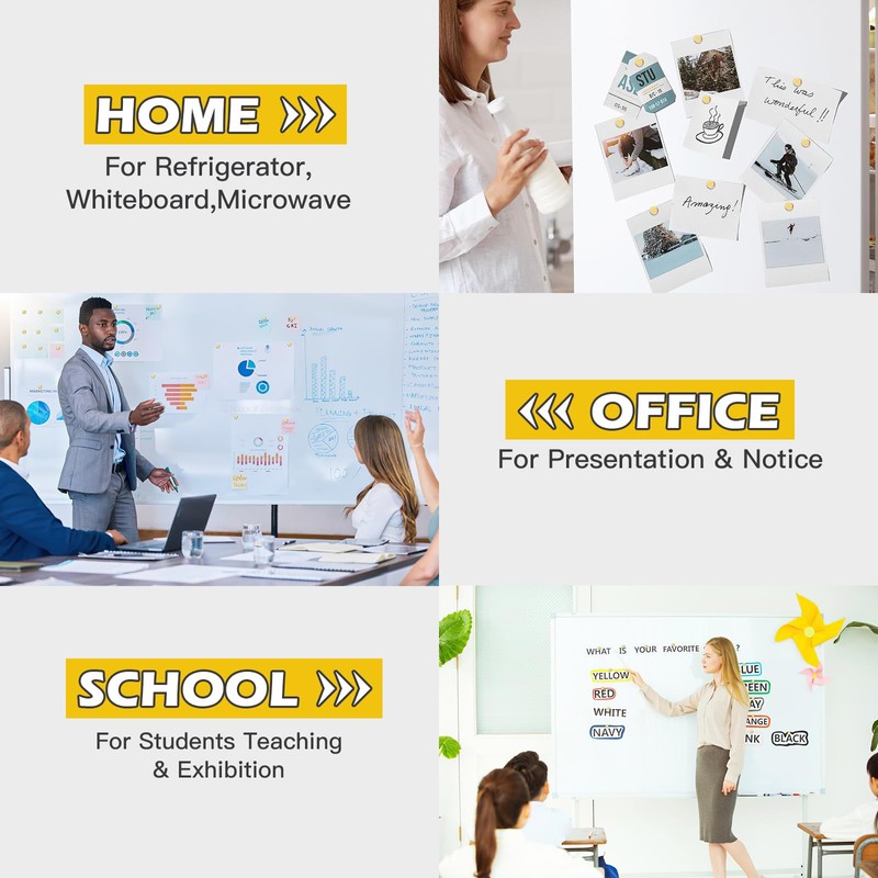 • Life helper: used in several scenarios and has a strong adsorption power. It can help you organise files and can be used for fridge magnets, photo walls, craft displays, etc. Unleash your creativity, DIY poster walls, decorative hanging walls and networked models to make life full of fun.