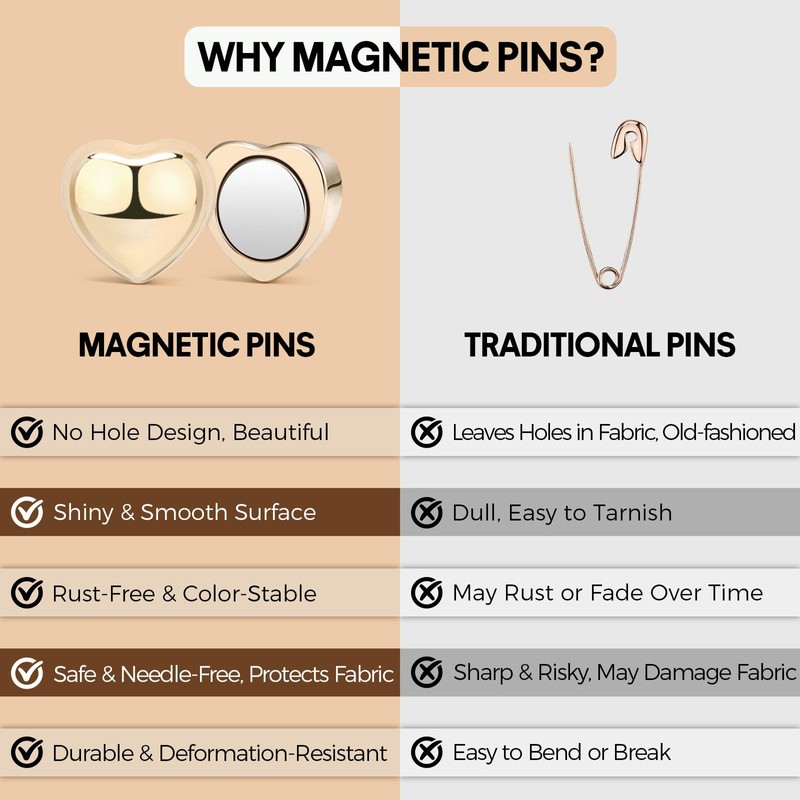 - Magnetic & Pinless Design: Designed to eliminate pinholes and fabric damage, these strong magnets securely hold scarves without leaving marks. They are especially ideal for delicate fabrics like silk.