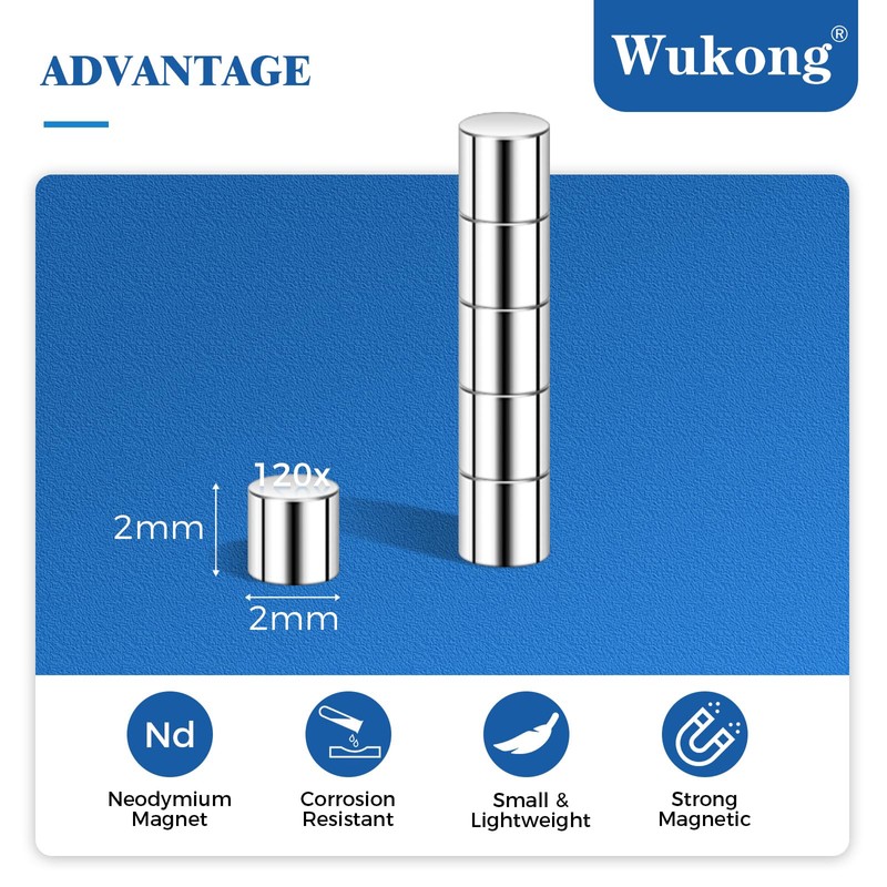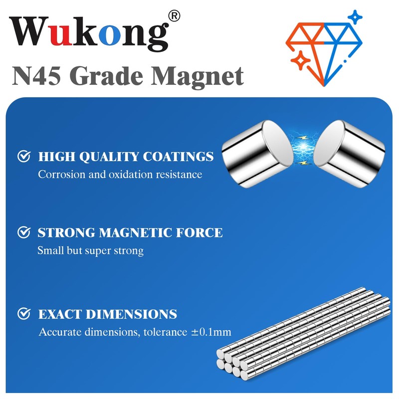 Wukong N45 2 x 2 mm Mini Magnets, Pack of 120 Miniature Neodymium Magnets, Small But Strong for Fridge, 3D Printer, Model and DIY Project