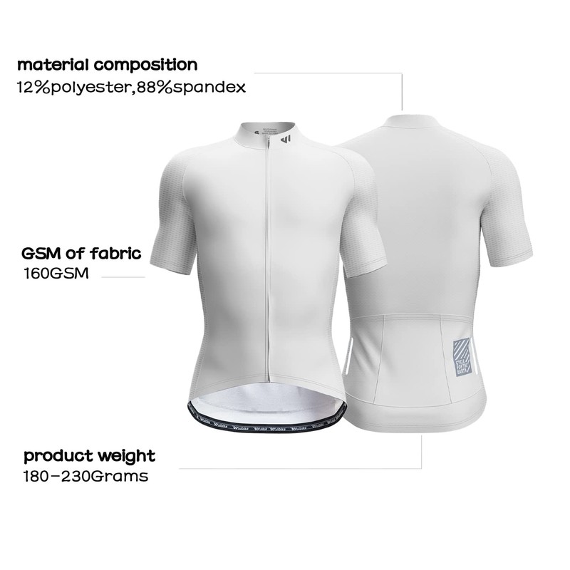 Wulibike Men's Cycling Jerseys Short Sleeve Bike Biking Shirts Full Zip with Pockets Road Bicycle Clothing White
