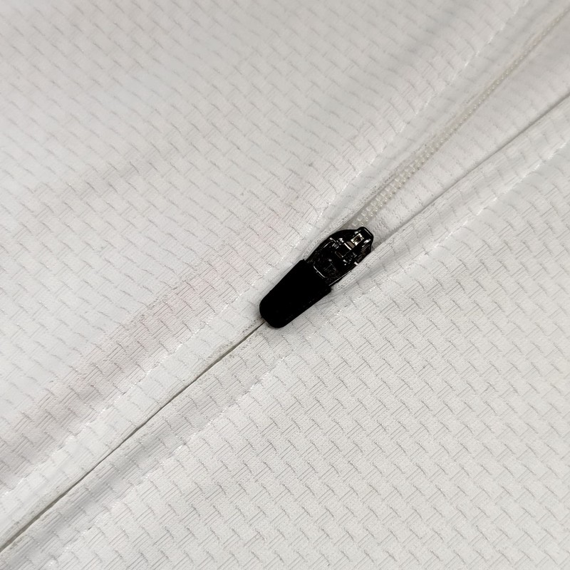 - Cycling jersey fabric use material 88% polyester 12% spandex. Designed of thin strip nets, breathable moisture-wicking, especially suitable for summer wear.
