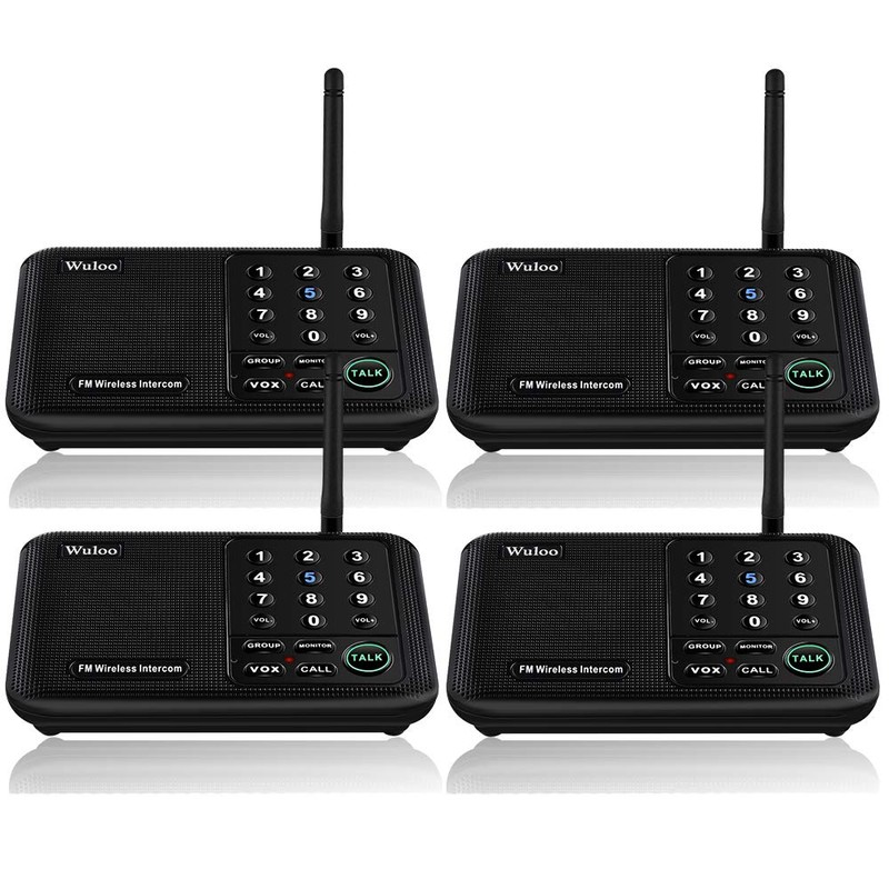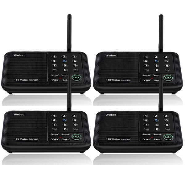 Wuloo Intercoms Wireless for Home 5280 Feet Range 10 Channel 3 Code, Wireless Intercom System for Home House Business Office, Room to Room Intercom, Home Communication System (4 Units Set, Black)