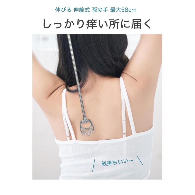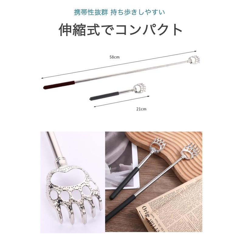 wumio 伸縮 孫の手 熊の手 2本セット 最長57cm 軽量 コンパクト 携帯 カバン まごの手 背中 痒い 掻く ステンレス シンプル 敬老の日 プレゼント まごのて 伸びる