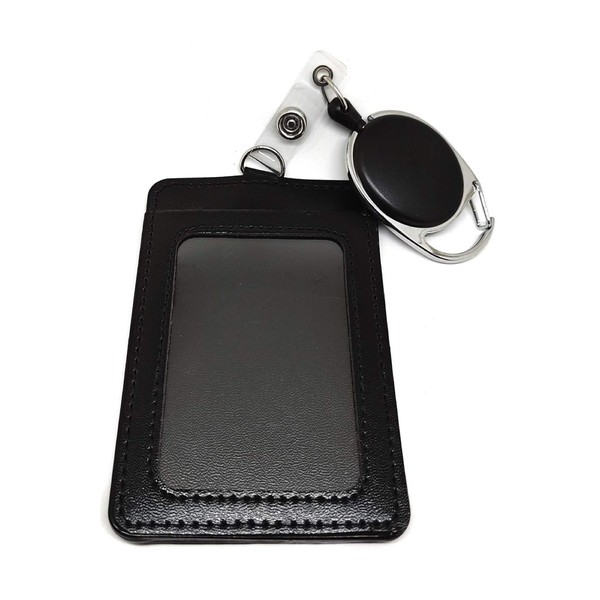 Wumio Pass Case with Reel, Black, Maximum 23.6 inches (60 cm), Extendable, ID Card Holder, IC Card, Name, Leather, Work, School, Train, Strap, Thin