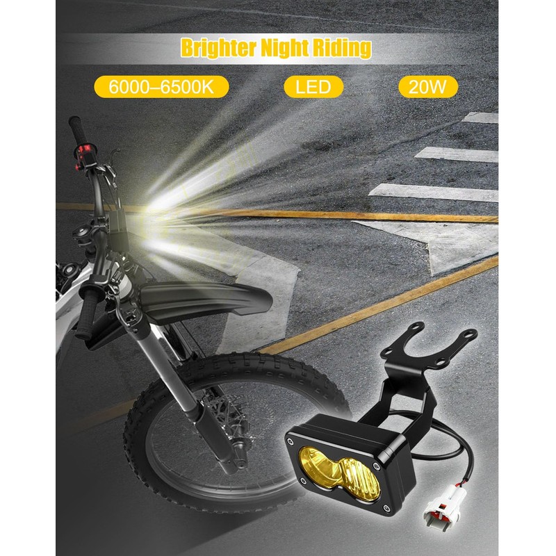 WUMZIJ Dirt Bike Headlight Kit with Mount Bracket Fit for SurRon Segway X260 and Talaria, Clear Yellow Floodlight