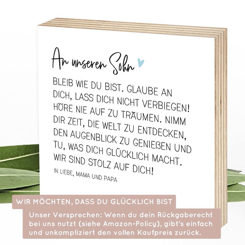 Wunderpixel® Holzbild Verbiege Sohn - Geschenk von Eltern - 15x15x2cm zum Hinstellen/Aufhängen, echtes Foto mit Spruch auf Holz - schwarz-weißes Wand-Bild Aufsteller zur Dekoration, Andenken