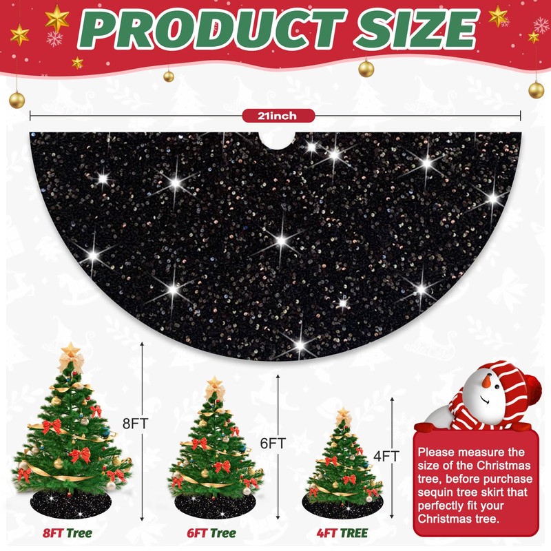 - 🎄【Size & Color - Black Christmas Tree Skirt】The black velvet christmas tree skirt measures 21 inches diameter, perfect decoration choice for mini tabletop trees. The sparkle features a stunning and eye-catching accessory that adds a touch of luxury and elegance to your holiday home decor.