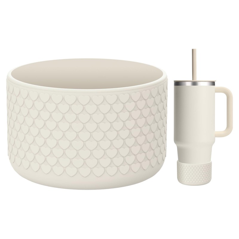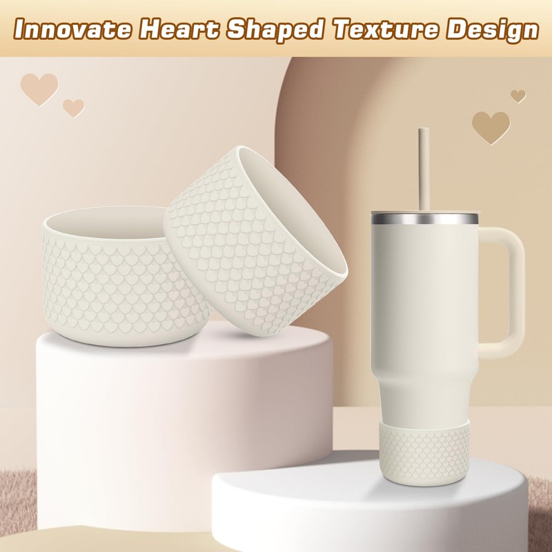 WUQID Heart Shaped Texture Silicone Boot Compatible with Stanle Quencher H2.0 & IceFlow Flip 20oz 30oz 40oz & Hydroo Sport Flask 12-24oz, Anti-Slip Bottle Bottom Sleeve Cover for 2.8-2.95in Bottom