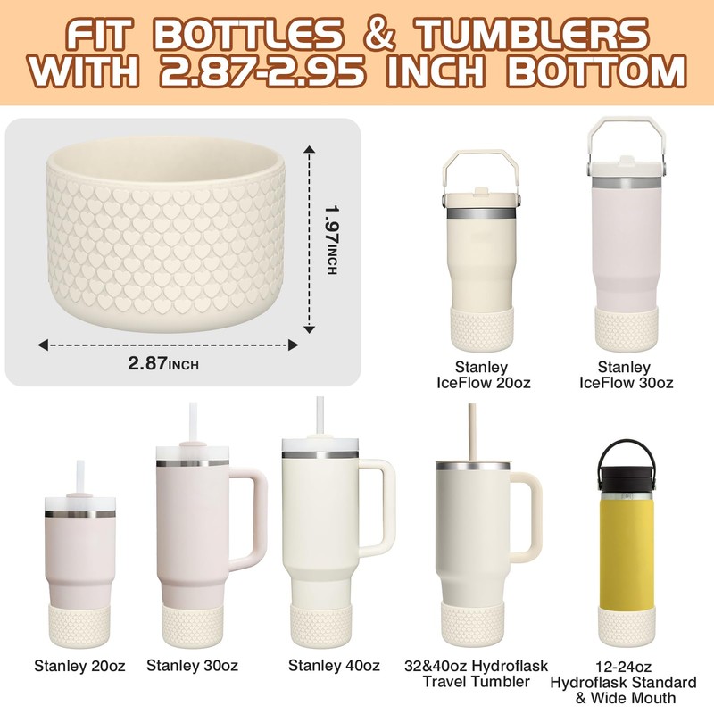 - SMALL SIZE PERFECT FIT - The silicone bottle boot Compatible with Stanle Quencher H2.0 40 oz, 30 oz, 20 oz tumblers, Stanle IceFlow flip 30 oz, 20 oz bottles, Hydroo sport flask 12-24 oz and other bottles with bottom width 2.85"-3".