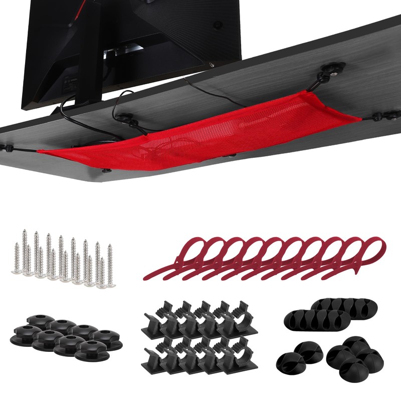 WurdeWindig Cable Net 95 x 24 cm Red Large Format for Business Office Organisation with Energy Stylish Cable Management