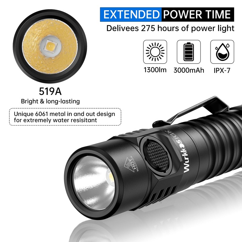 Wurkkos FC11C Led Flashlight Rechargeable High Lumen 1200, Small Powerful Flashlight USB C, Super Bright EDC Flashlight IP67 Waterproof, 155Meters Beam Distance, 90 High CRI Flashlight(5000K)