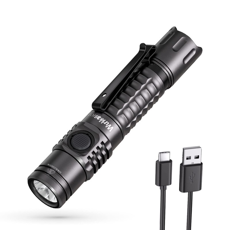 Wurkkos FC12 Tactical EDC Flashlight,Ultra Bright 2000LM Pocket USB-C LED Flashlight with SFT40 LED,IPX-8 Waterproof Fashion Design LED Torch for Camping Hiking Cycling (Grey)