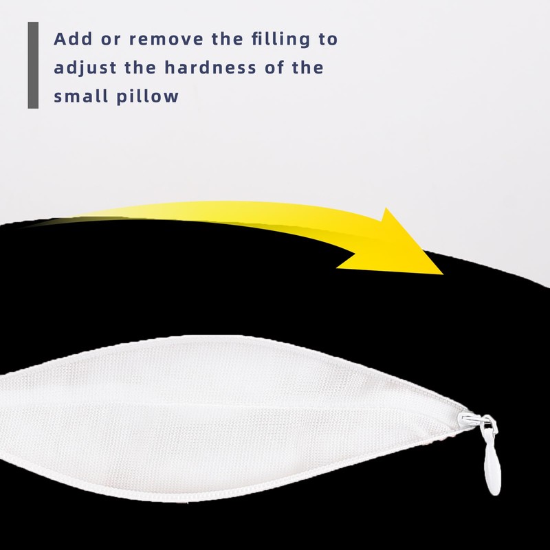 But wait, there's more! Our mini pillow comes with a hidden zipper, allowing you to adjust the filling and customize the firmness to suit your personal preference. And when it needs a clean, you can simply toss it in the washing machine on a gentle cycle or even give it a low-temperature tumble dry. Just remember, no bleach!