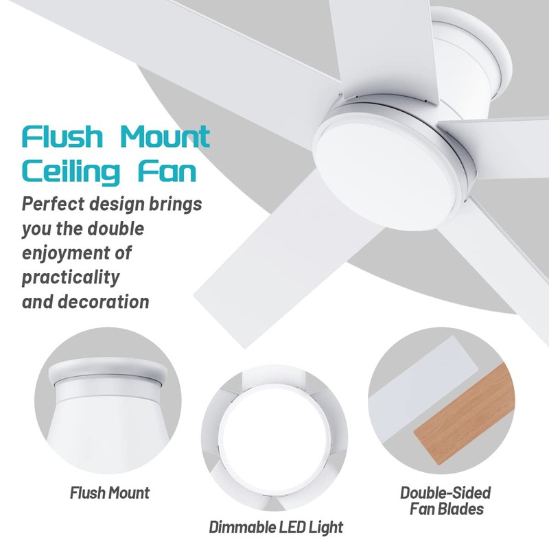 - Modern Minimalist Style:Modern ceiling fan metal motor housing with five white wooden fan blades makes low profile ceiling fan look more modern. Acrylic cover plus flicker-free LED light source can make the light more soft. The simple and modern design style makes your room more stylish and upscale.