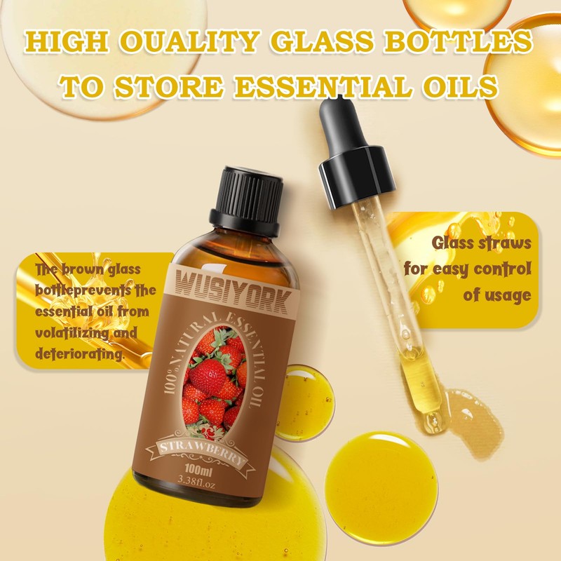 wusiyork Strawberry Essential Oil 100ML - 100% Pure and Natural Therapeutic Grade Oils for Aromatherapy Diffuser - 3.4 Fl Oz / Strawberry