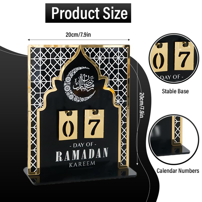 WUSJCOF 1 Piece 2025Ramadan Advent Calendar - Acrylic Eid Mubarak DIY Countdown Calendars for Decoration - Craft Ornament Ramadan Gift (Black)