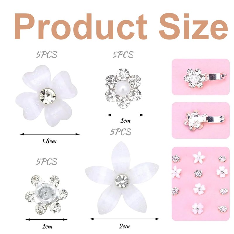 WUSJCOF 20 Stück Mini-Blumen-Haarspangen, süße Strass-Haarnadeln, kleine dekorative Hochzeits-Haarspangen, Braut-Haar-Accessoires für Mädchen und Frauen (Weiße Blumen)