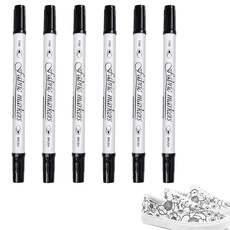 WUSJCOF 6 Pieces Dual-Tip Permanent Fabric Markers, Machine Washable, for Personalizing Shirts, Bags, Textiles (Black)
