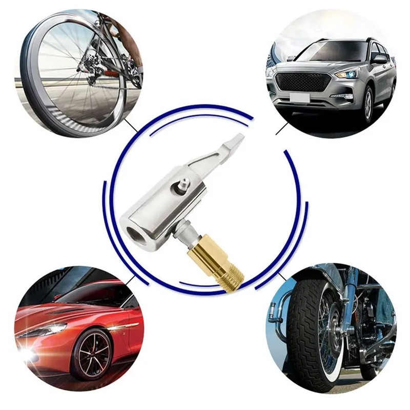 - All-metal construction: portable tire inflator chuck adapter for bicycles, motorcycles and car tires. Make sure this is the correct application type for your air pump hose adapter before ordering.
