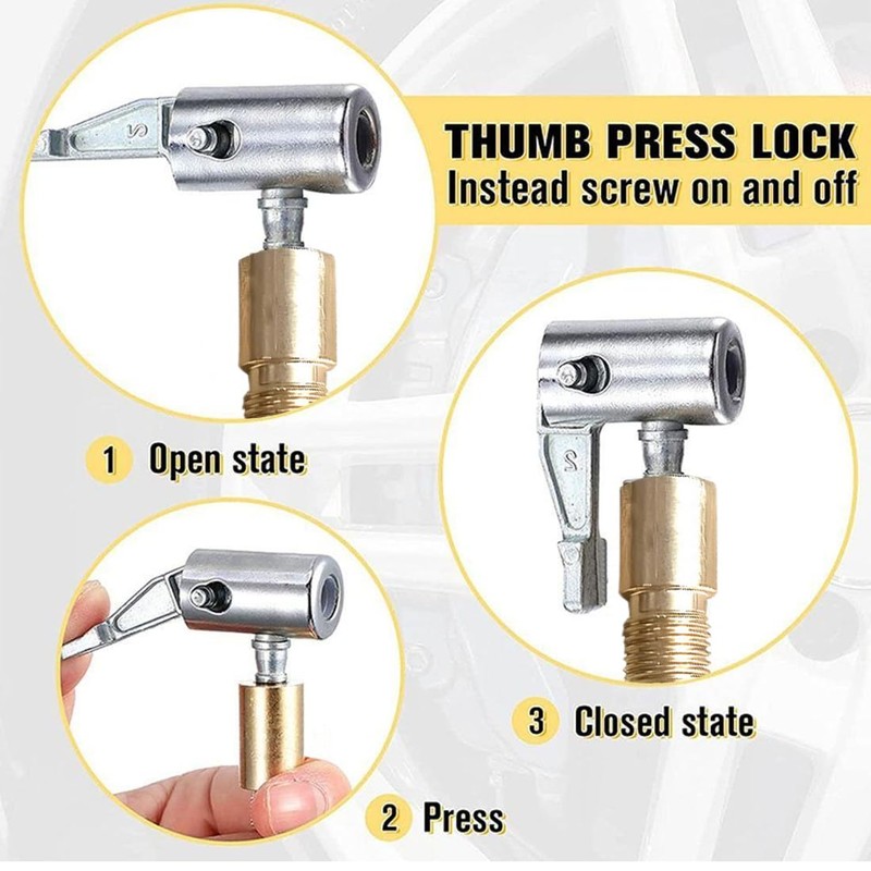 - NO LEAKING The cobee tire air chuck with clip adapter prevents air loss. Press the locking clip, slide the air chuck into the valve stem, loosen the clip. No additional tools needed, very practical and convenient. Perfect seal on the tyre valve.