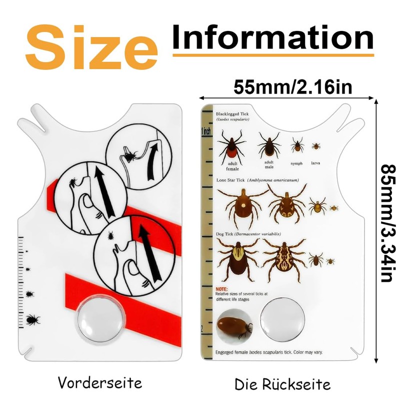 Compact size for on the go: the credit card size tick card fits perfectly in your pocket, backpack or wallet. Ideal for outdoor activities, camping or walking with pets