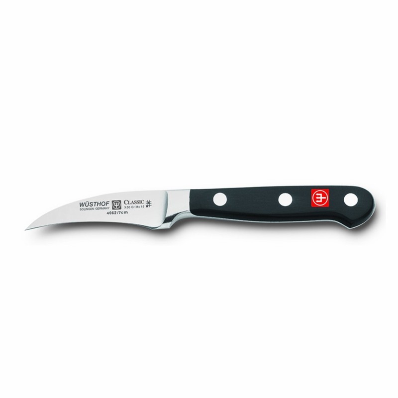 Wusthof Classic 2.75" Peeling Knife with Bird's Beak is perfect for paring, peeling and even shaping. Curved blade is strong and rust-resistant and forged from a single piece of high-carbon steel.