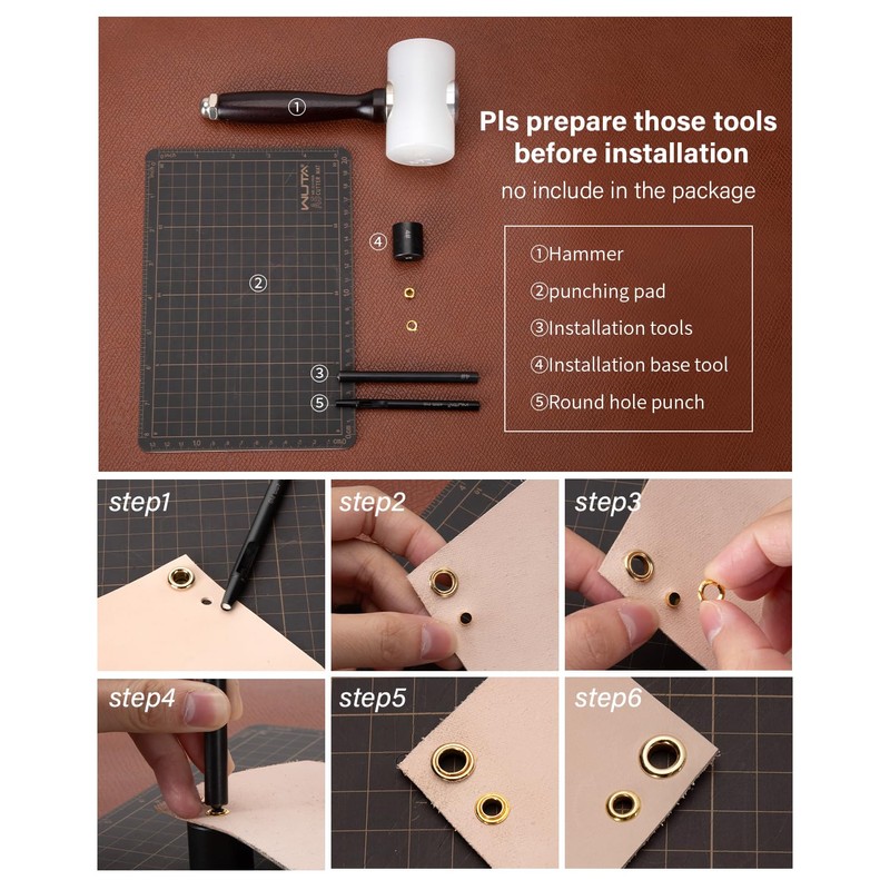 WUTA Eyelets Setting Tool,Smooth Black Grommet Installation Tools, Rivets Set...