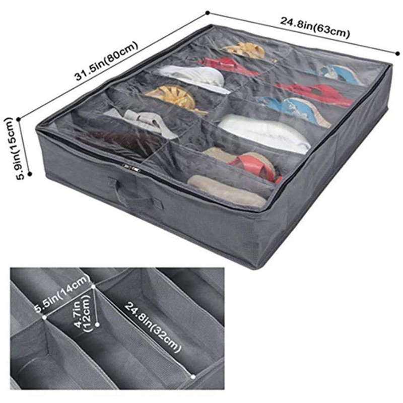 - The storage box measures 80 x 63 x 15 cm, each cell: 32 cm x 15.3 cm x 15 cm, suitable for trainers and women with 10 cm high heels. With the large shoe organiser, you can use unused storage space under the bed and easily sort out messy shoes.