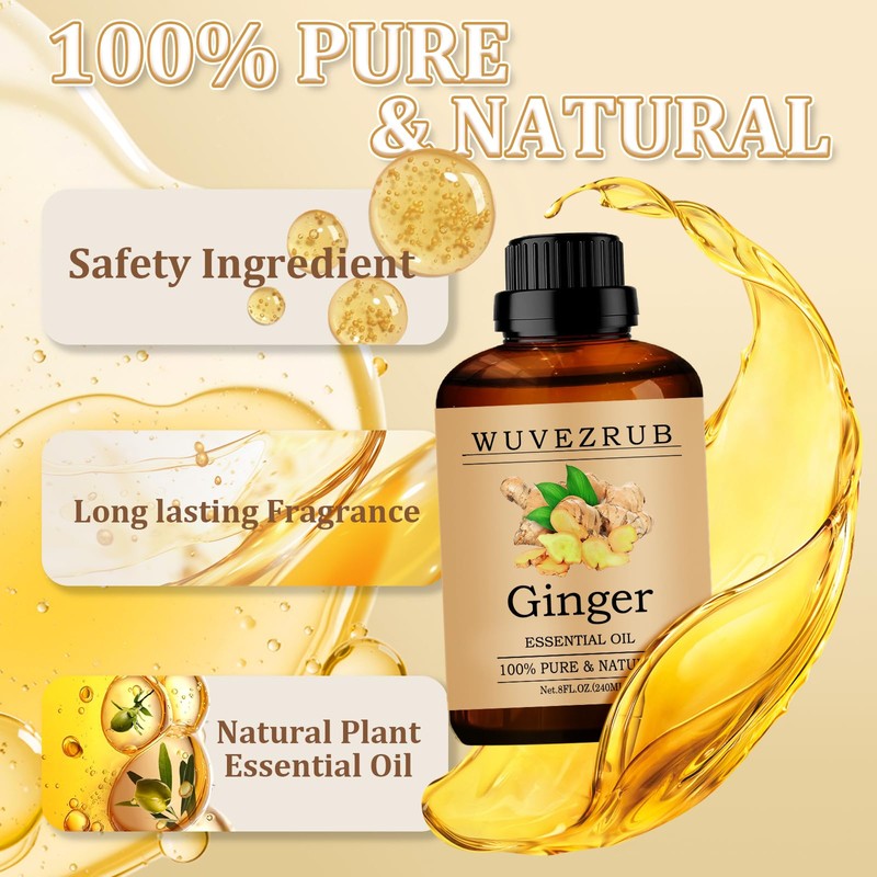 Wuvezrub Wuvezrub Ginger Essential Oil 240ML - 100% Pure and Natural Oils for Aromatherapy Diffuser - 8 Fl Oz/Ginger