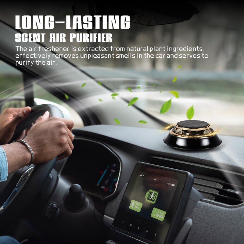 • 【Solar Powered】: Our air freshener is solar-powered and requires no batteries or external power supply to operate, which saves you a lot of trouble. The motor bearing will be automatically driven to rotate and diffuse the scent under sunlight. It rotates quickly, diffuses the scent efficiently, and is ultra-quiet, making no noise.