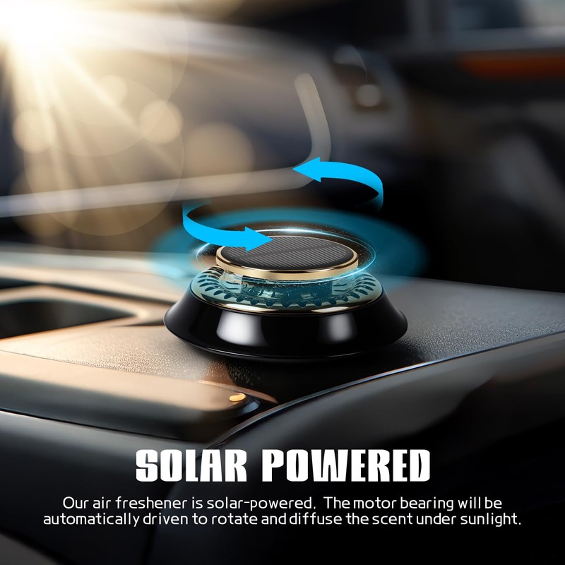 - 【Solar Powered】: Our air freshener is solar-powered and requires no batteries or external power supply to operate, which saves you a lot of trouble. The motor bearing will be automatically driven to rotate and diffuse the scent under sunlight. It rotates quickly, diffuses the scent efficiently, and is ultra-quiet, making no noise.