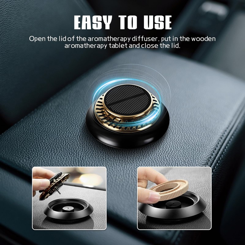 • 【Easy to Use】: Its installation process is simple. First, open the lid of the aromatherapy diffuser, put in the wooden aromatherapy tablet and close the lid. Then, stick double-sided tape to the bottom of the aromatherapy diffuser. Finally, stick the aromatherapy diffuser in the car where the sun can shine.