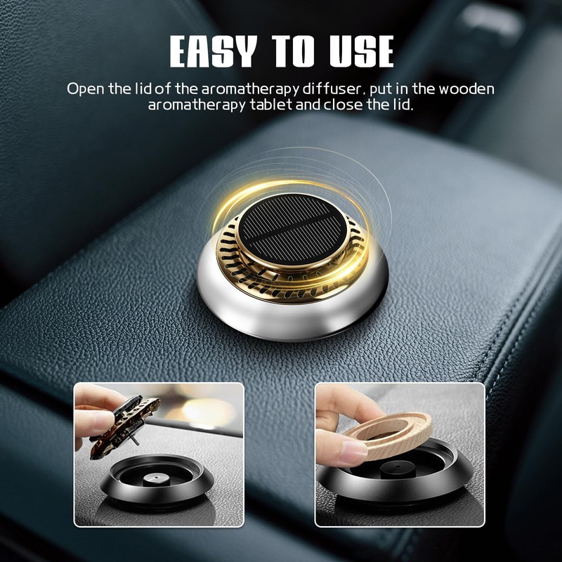• 【Easy to Use】: Its installation process is simple. First, open the lid of the aromatherapy diffuser, put in the wooden aromatherapy tablet and close the lid. Then, stick double-sided tape to the bottom of the aromatherapy diffuser. Finally, stick the aromatherapy diffuser in the car where the sun can shine.