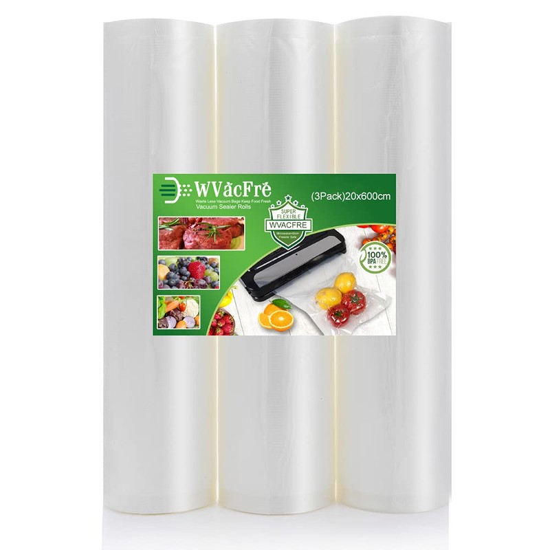 WVacFre 3 Pack 20x600cm Textured Vacuum Sealer Bags for Food Saver,BPA Free and Heavy Duty Embossed Vacuum Seal Food Saver Bags,Great for Sous Vide Vaccume Sealer PreCut Bag