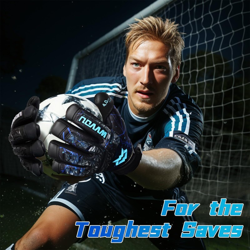 WVVOU Goalkeeper Gloves for Adults and Teenagers, High Performance Goalkeeper Gloves Children with 5 Removable Fingersave, Football Gloves with 4 mm Sticky Latex on the Palm (Blue, 7)