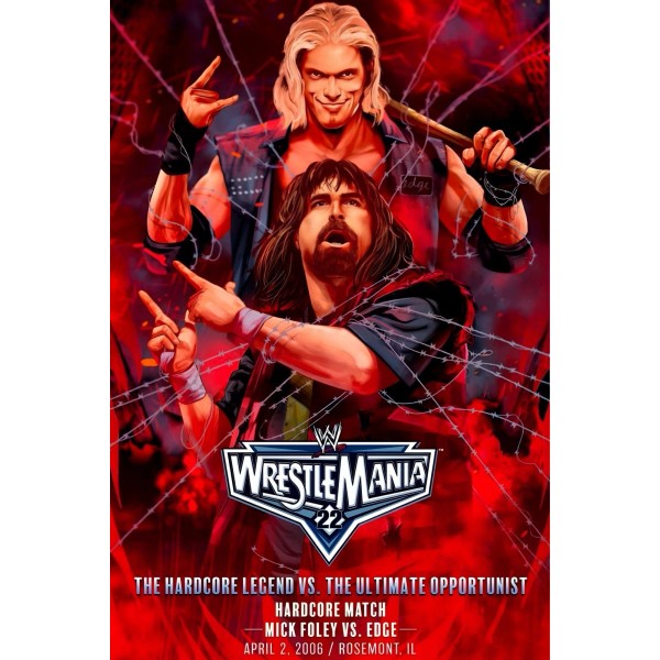 WWE GIANT 24” X 36” POSTER - WRESTLEMANIA 22 EDGE MICK FOLEY CACTUS JACK