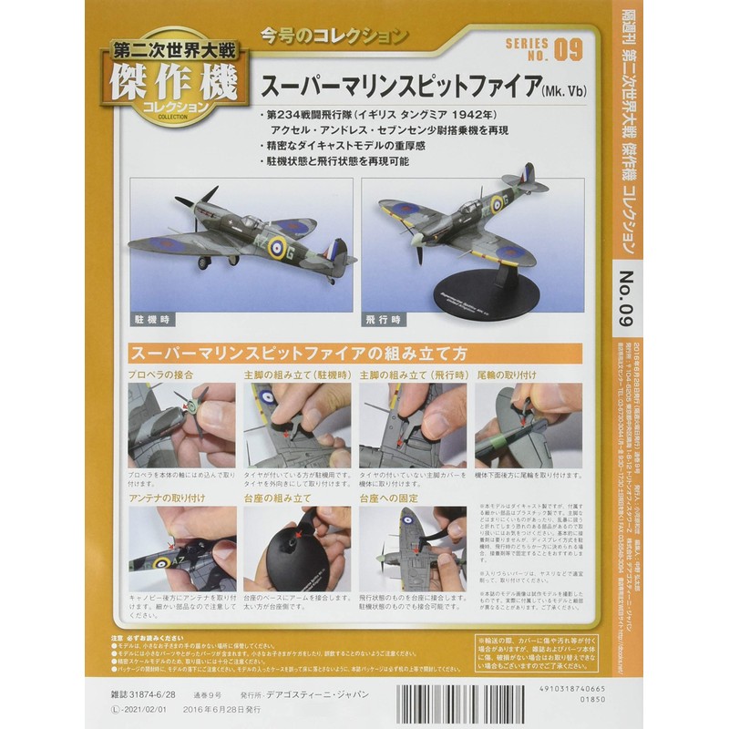 WWII Masterpiece Aircraft Collection No.9 (Supermarine Spitfire (Mk.Vb)) [Separate Encyclopedia] (w/Model Collection) (WWII Masterpiece Aircraft Collection)