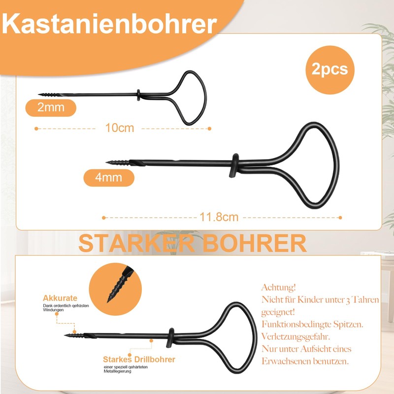 WWISTOA Chestnut Drill Set 2-4 mm Chestnut Drill for Children, Craft Set Chestnuts, Autumn Crafts for Children, with DIY Craft Accessories