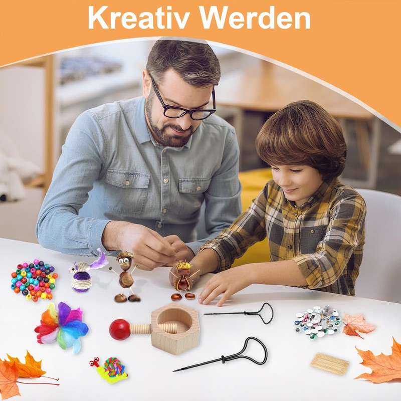 - Complete set: contains 2 chestnut drills (2 mm and 4 mm), 50 colourful pipe cleaners (30 cm), 60 toothpicks and various decorative elements